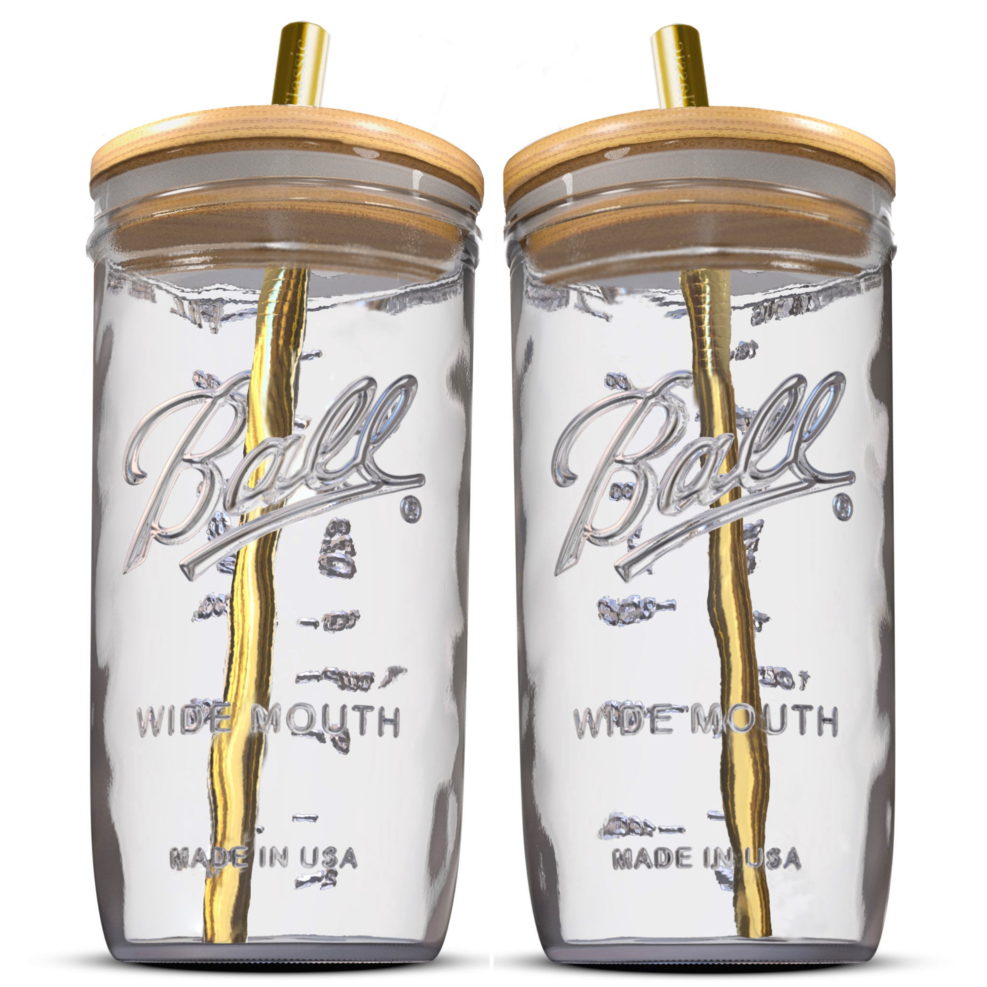 - Your new Bamboo Boba Tea set comprises of (2) Bamboo Mason Jar Straw Lids with Silicone Seals, (2) Gold Reusable Bubble Tea Straws, (2) Wide Mouth Mason Jars 24 OZ, and (2) Ball Silver Wide Mouth Lids with Bands.